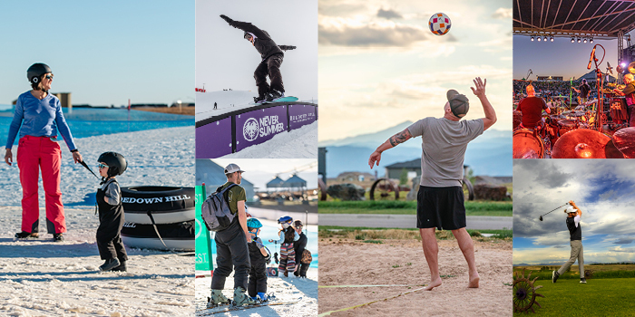 As the seasons change, Hoedown Hill reinvents itself. Sand volleyball courts buzz with activity, families spread out on blankets for outdoor movies, and residents gather for live music festivals that fill summer nights with energy. It’s a rare and remarkable amenity that’s in the RainDance neighborhood and that serves all of Colorado.